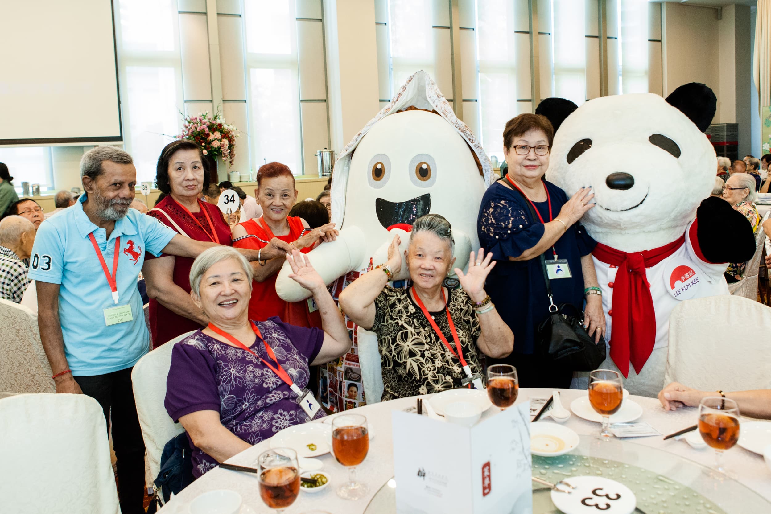 李錦記環球義工隊帶同吉祥物李錦記熊貓及蠔寳出席「國際名廚2019新加坡慈善午宴」,與在場700位樂齡長者和殘障人士互動,氣氛熱鬧。