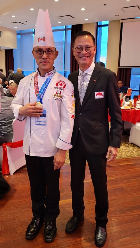 李錦記美洲區總裁胡志成(右) 與個人(熱菜)特金獎得主、加拿大精藝飲食協會代表黃文堅師傅。